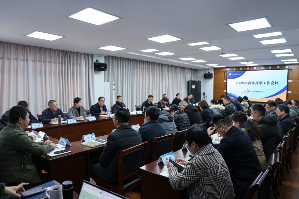 为确保新学期各项工作顺利开展,切实做好开学及校园安全稳定工作,2月19日,学校在行政楼401会议室召开2025年春季学期开学工作会议。校领导、各部门及二级学院负责人参加会议,会议由校长吴中平主持。