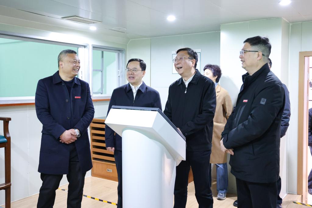 苏为泽书记详细介绍了学校办学情况,重点汇报了学校在“新双高”建设、现代航运人才培养、产教融合平台建设、科技创新成果转化等方面取得的成效。特别是近年来通过深化校企合作、创新人才培养模式,建成了集教学、实训、科研、服务于一体的产教融合示范基地,为服务现代航运产业转型升级和区域经济高质量发展提供了有力支撑。