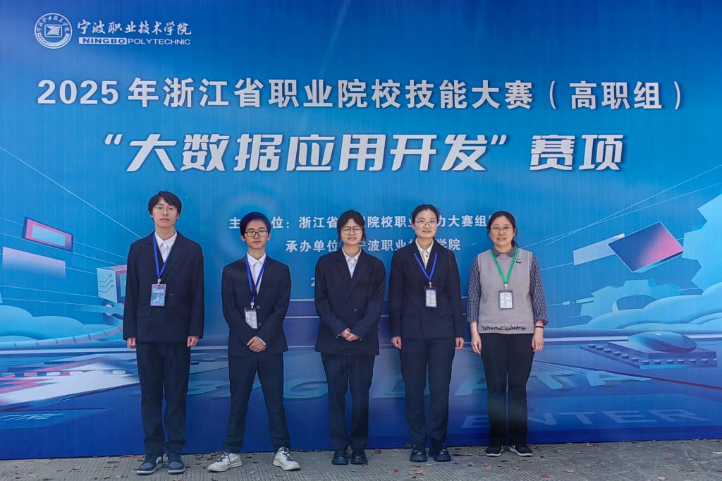 4月5日-6日,由浙江省教育厅主办,宁波职业技术学院承办的2025年浙江省职业院校技能大赛高职组“大数据应用开发”赛项圆满落幕。本届赛事吸引了全省50支队伍同台竞技,共同展示了新一代大数据技术领域内的专业素养和创新精神。我校现代港口贸易学院大数据技术专业由吴娜炯、金悦奇老师指导,张肖肖、俞旗、陈志超、杨政四位同学组成的团队默契协作,喜获铜奖,为学校争得荣誉。