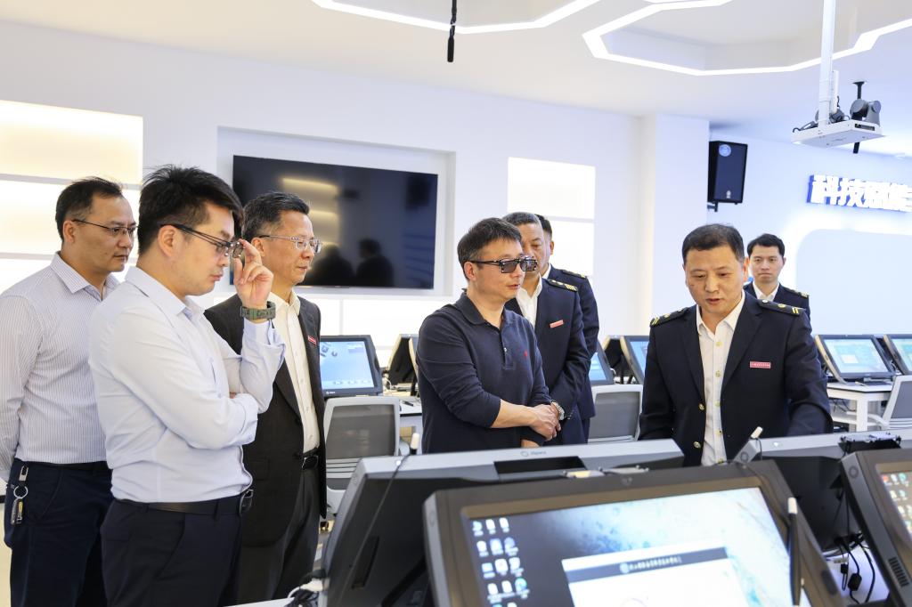 李永强副主任一行走访了校史馆、航海操纵模拟器、国家级现代航运虚拟仿真实训中心等,对学校的专业建设、数字化建设和思政教育成果表示肯定。