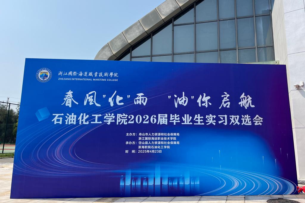 4月23日,石油化工学院在行政楼506会议室举行了2026届毕业生实习企业恳谈会。校党委书记苏为泽、岱山县人力资源和社会保障局副局长何燕、石油化工学院班子和中国石化上海石油化工股份有限公司、浙江聚泰新能源材料有限公司、岱山糖能新材料有限公司等18家企业代表参加会议,会议由石油化工学院党总支书记童华年主持。