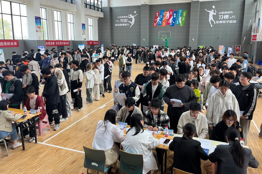 恳谈会后,由市人社局和我校共同主办,岱山县人社局和石油化工学院承办的2026届毕业生实习双选会在体育馆举行。现场气氛活跃,与会领导们与参会企业及学生亲切交流,询问同学们的就业意向与求职进展,现场指导同学们根据专业和个人实际情况选择合适的岗位。