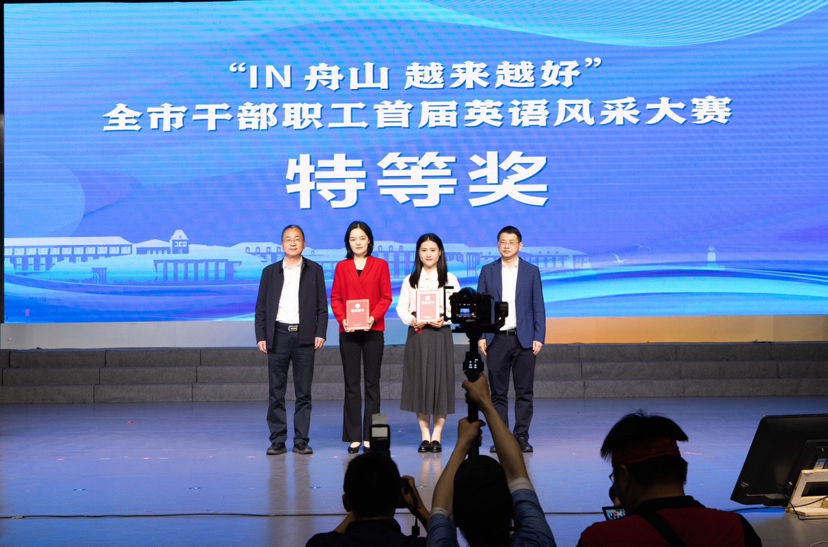429日,“IN舟山,越来越好”全市干部职工首届英语风采大赛在浙江海洋大学举行来自全市机关事业单位及绿色石化、船舶海工、现代航空、海事服务等行业领域的21名选手展开激烈角逐,最终我校国际教育学院教师邵瑶以总分第一荣获大赛特等奖。