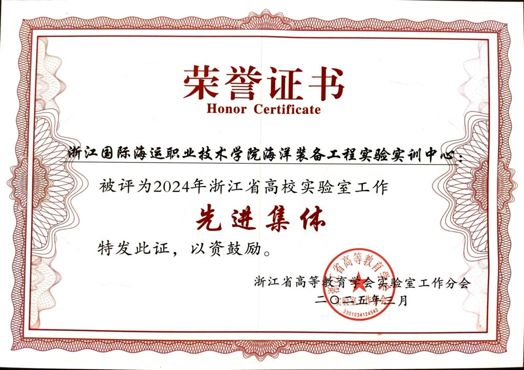 近日,浙江省高等教育学会实验室工作分会公布2024年浙江省高校实验室工作先进集体和先进个人评选结果,我校海洋装备工程学院(海洋装备工程实验实训中心)荣获浙江省高校实验室工作“先进集体”,航海工程学院刘霜冬老师获实验室工作先进个人。