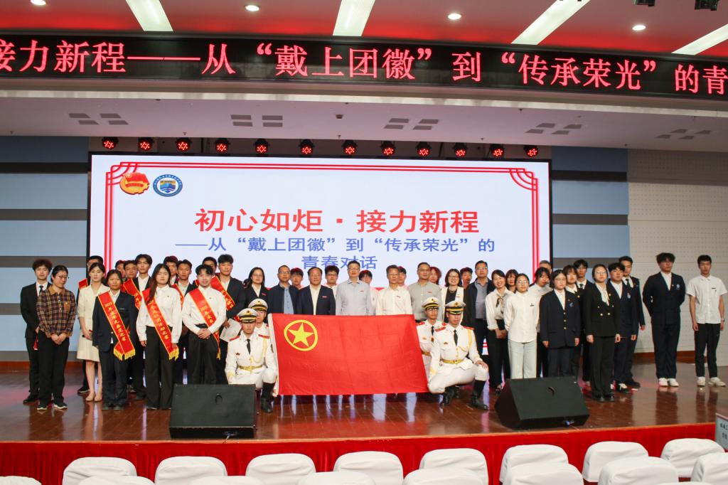 随后,退团代表赵怡琦将团旗传递给新任教工团支部书记王亚鹏,象征着使命与荣光的接力。