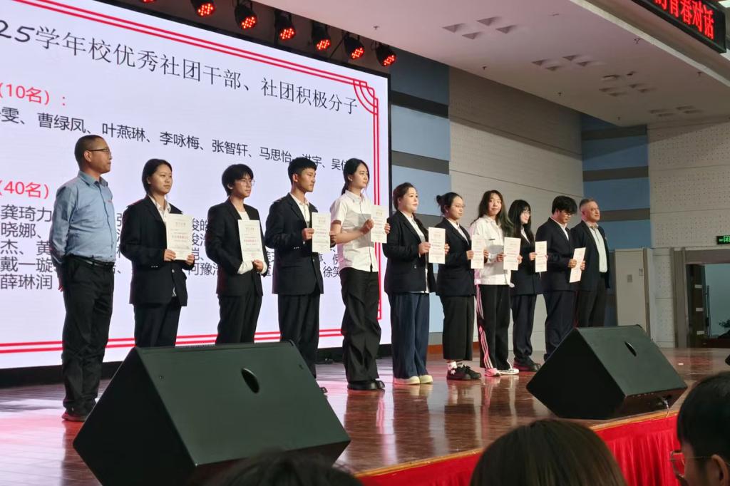 现场还隆重表彰并颁奖了2025年第十届校园“十佳之星”,2024-2025学年校级优秀团员、优秀团干部、先进团组织,校级十佳社团及优秀社团指导教师,以榜样力量激励全体团员青年以先进为标杆,在青春赛道上奋力奔跑。