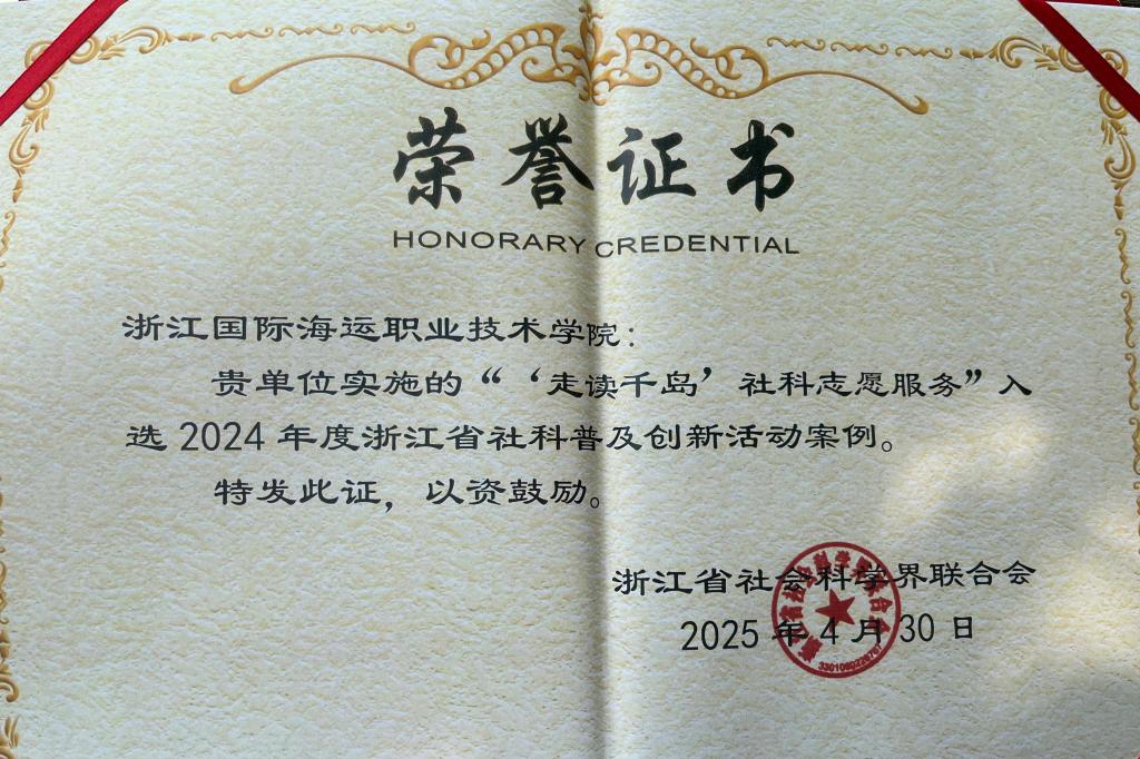 我校“走读千岛”社科志愿服务活动案例获浙江省社科普及创新活动案例