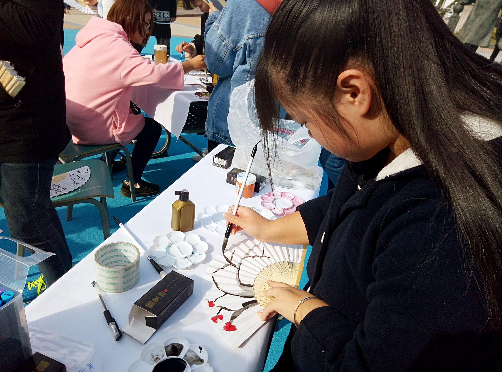 活动一开始,便吸引路过学生驻足参赛。同学们的作品有缤纷色彩点缀一身的凤凰,引颈似要高鸣;有凌寒独放的梅花,超凡脱俗,烈焰的红又充满着无限活力,给冷冽的的寒冬带来一丝暖意。小小的折扇画,题材丰富,刻画细腻,千姿百态,意趣盎然。