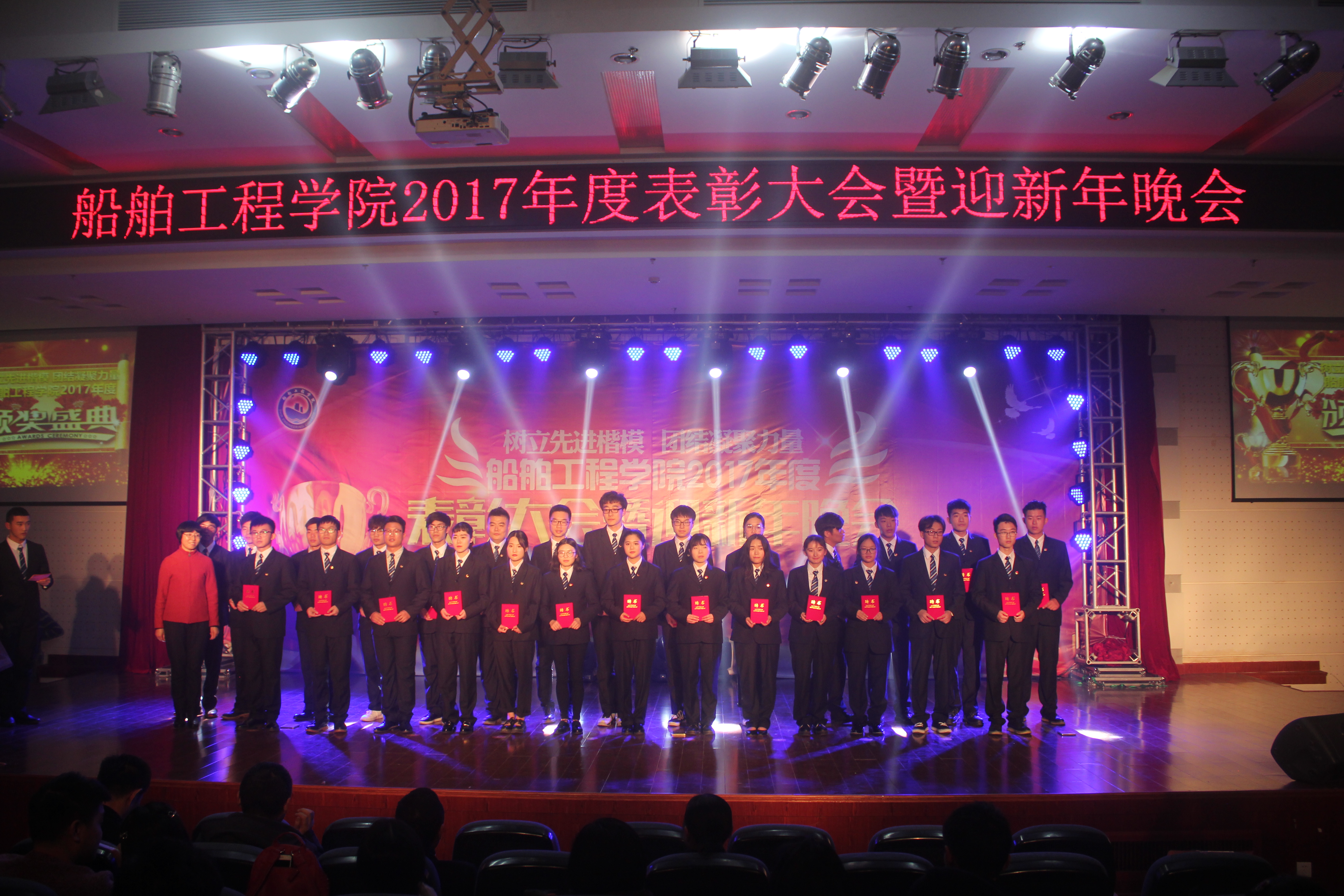 12月21日晚,“树立先进楷模 团结凝聚力量”船舶工程学院2017年度表彰大会暨迎新年晚会在图书馆4楼报告厅召开。