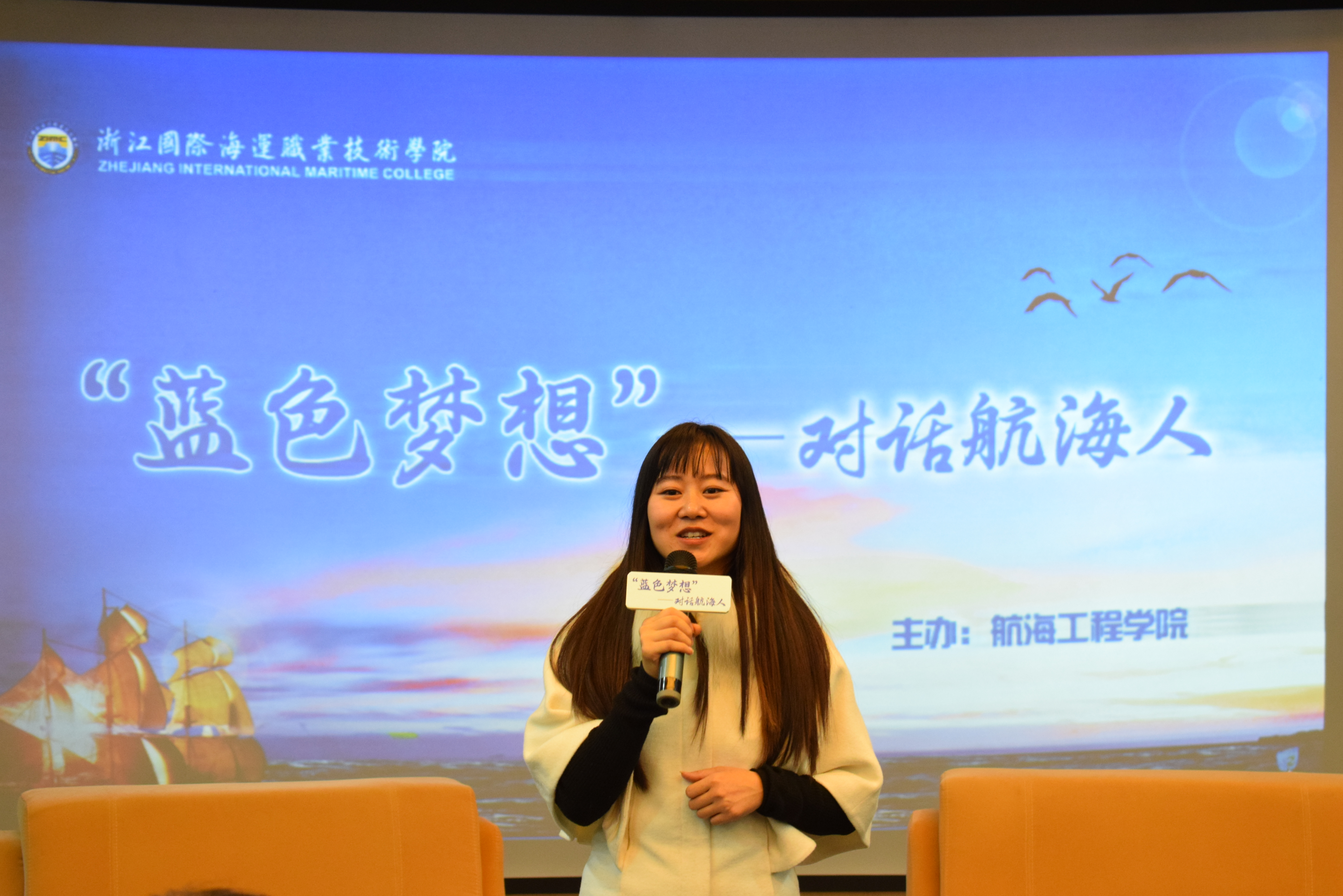 首期嘉宾是毕业于马来西亚海事学院的李俐力,持有大副证书。儿时立下航海梦,17岁走上航海路,她将十年的远洋生活娓娓道来。师生们跟着她一起领略异国风情、感受海上紧急事件的惊险以及遭遇海难的幸存,时而轻松、时而向往、时而震惊,一位女船员的勇敢坚毅,对航海梦的执着坚守深深触动了在场的每一位观众。经过近2个小时的互动交流,同学们对女船员有了深入了解,对航海有了进一步的认知,对职业前景有了更多的期待,更加坚定了自己的蓝色梦想。