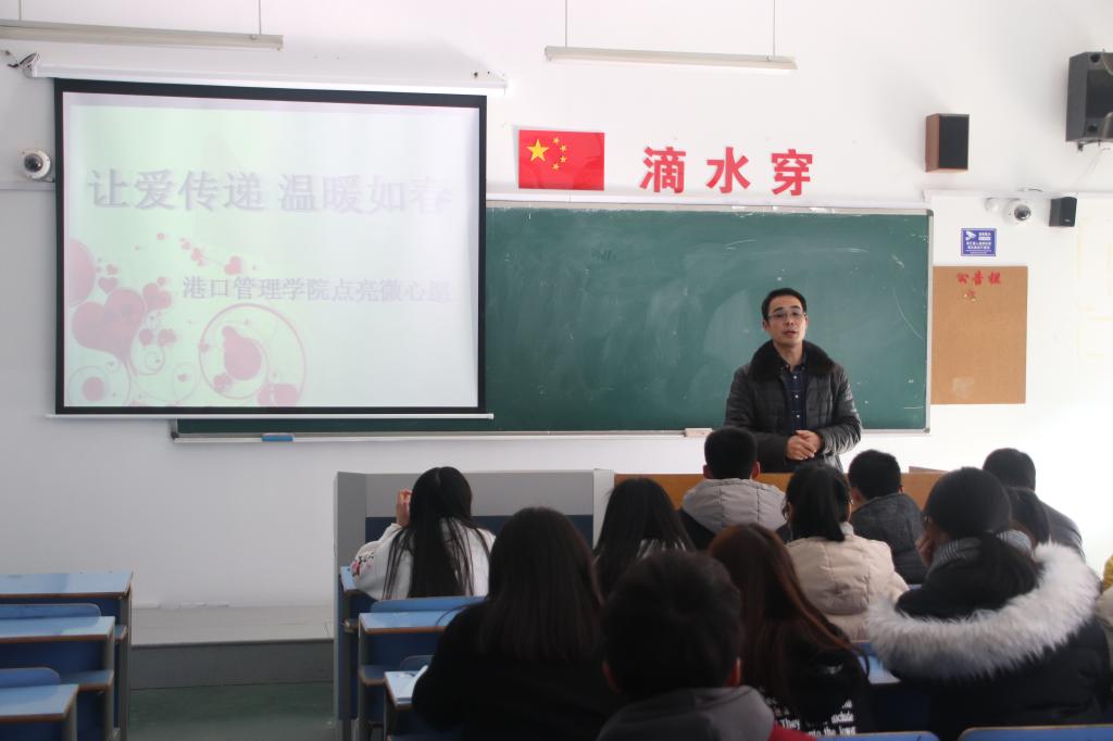 新年伊始,港口管理学院“让爱传递 温暖如春”微心愿点亮活动在4120教室举行,学院党总支成员和40余名学生参加。
