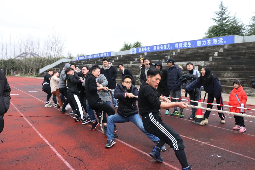 哨声响起,各班参赛选手和助阵老师们紧握长绳,卯足了劲拼命往后拉!未参赛同学组成的啦啦队,为参赛队员们积极呐喊、加油助威;选手们的激情犹如火热的太阳,拼尽全力尽情地呐喊着:“一、二、拉!”。此时就是每个团队凝聚力的表现时刻,有序的节奏和高昂的斗志体现着船舶学子的拼搏精神。