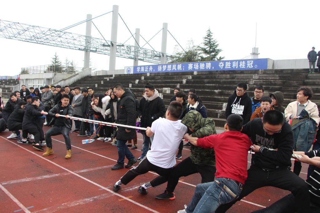 3月21日下午,“船”动力“舶”正气寝室文化节开幕式后,船舶工程学院在学校田径场举办文化节的第一项活动——“凝心•聚力•扬风采”主题拔河比赛。