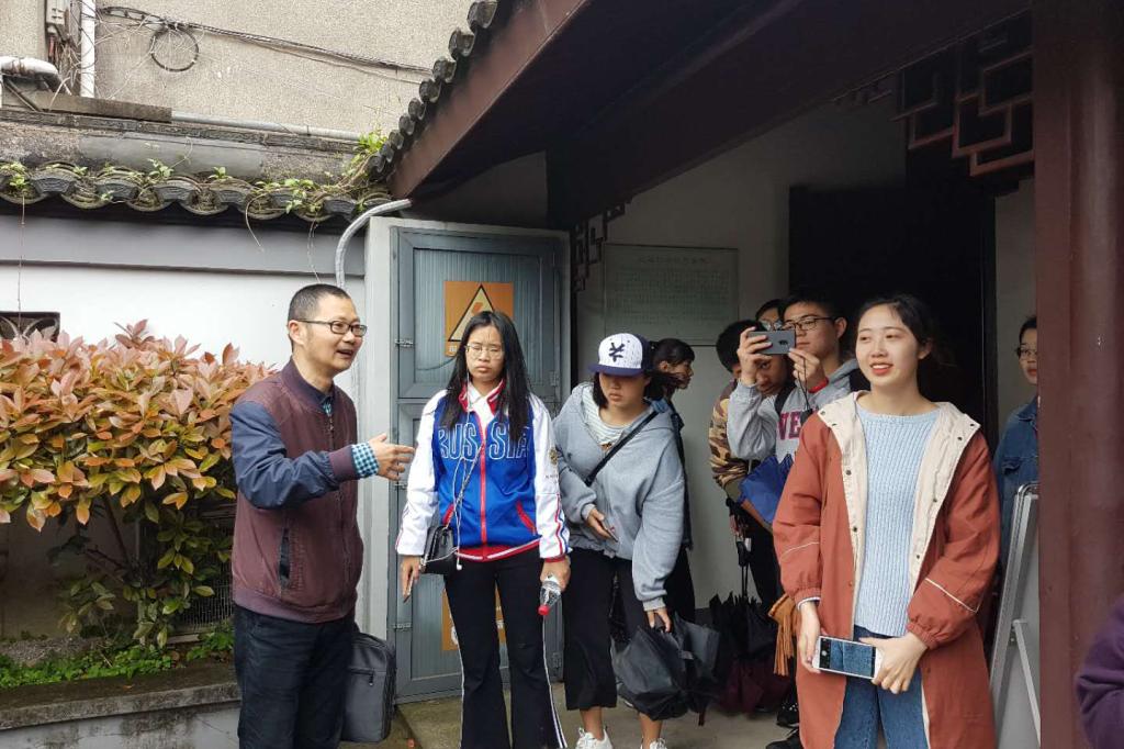 当天上午,小雨绵绵,一行人乘坐38路公交车来到定海。定海古城是一座历史悠久、古迹众多的的千年古城,也是中国唯一的海岛文化名城。同学们跟着孙峰老师走过东岳山、廷佐小学、周家塘、刘鸿生故居、定海一中、舟山名人馆,听孙老师讲战争、讲英雄、讲文化名人。定海古城英才荟萃,这里除了著名的鸦片战争外,还有抗倭、抗清等一大批历史文化遗存。
