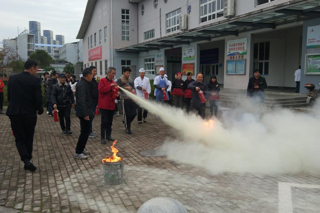 为推进“平安”校园建设,提高后勤从业人员对突发火灾的应急能力。12月19日下午,后勤产业处邀请保卫处梁卫国老师向食堂、商贸区工作人员讲解了如何运用消防知识做好报告火情、疏散学生和救火等工作,并演示了灭火器的用法。