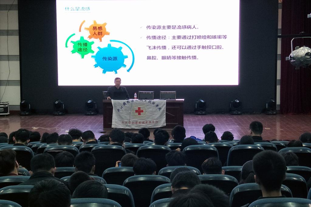 张均和科长从结核病、流感等传染病的主要症状、传播途径、鉴别诊断等方面入手,为师生们介绍了传染病相关知识,并详细讲解了预防策略和措施,强调对传染病病人坚持“五早”,即早发现、早诊断、早报告、早隔离、早治疗,以更好保障全校师生的身体健康。
