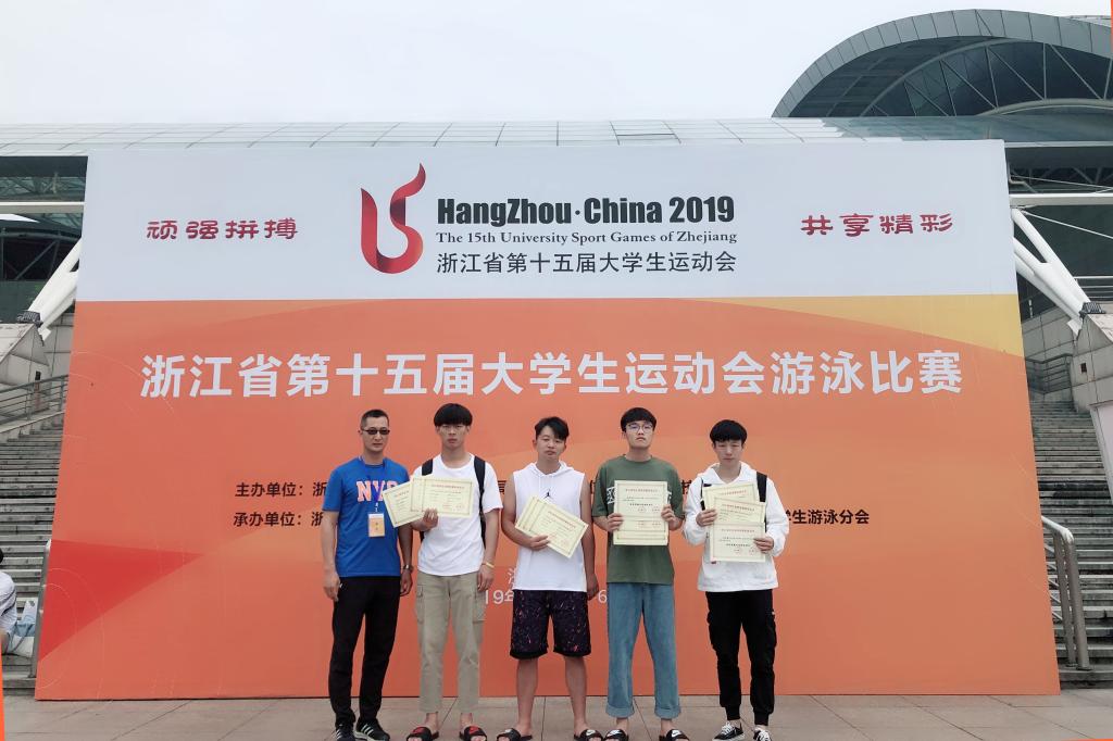 5月29日至6月2日,浙江省第十五届大学生运动会游泳比赛在浙江财经大学举行。由我校航海工程学院颜腊建、邓非凡、周啸天、沈秋伟、施挺和港口管理学院杨约瑟等6名队员组成的参赛队在周彪和孙磊两位老师的指导下积极训练备战,在比赛中喜获佳绩。