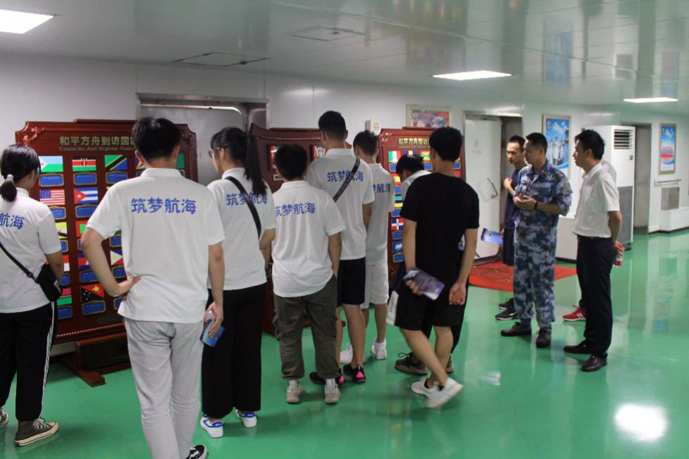 在船上军医的带领下,同学们参观了船上的基本医疗场所和官兵起居室。同学们仔细聆听讲解,认真观看医护设备。干净整洁的环境、完善的医疗设施、浓厚的学习氛围给同学们留下了深刻印象。