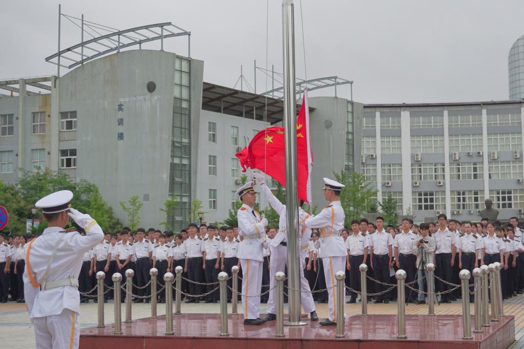 早上7点整,航海工程学院师生在国旗下列队完毕,在雄壮的国歌声中五星红旗冉冉升起,全体师生高唱国歌。随后,方佳俊同学领全体学生重温入团誓词。宣誓完毕,优秀团员代表马海燕同学以《我与祖国共奋进》为题做国旗下演讲,并带领全体团员齐唱团歌。她在演讲中讲到:“现在,祖国的发展需要我们,作为一名中国共青团团员,我们肩负着祖国的未来,任重而道远……同学们,让我们努力吧,牢记历史使命,不忘初心,我要和祖国共奋进,我要和祖国共拼搏,我要同祖国共进步!