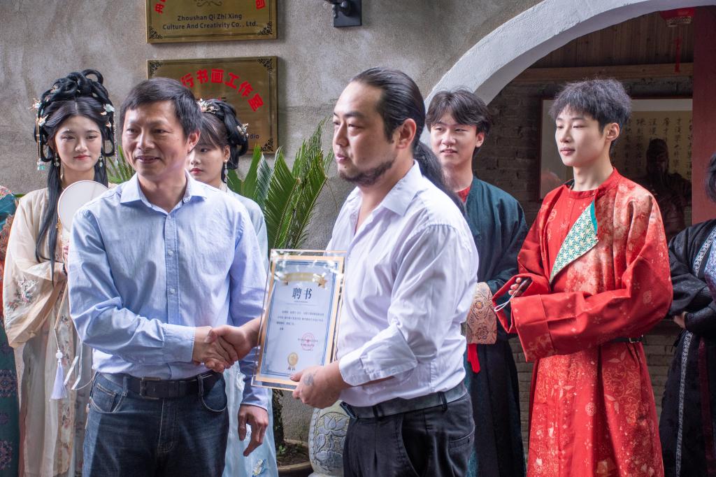当天,数字媒体艺术设计专业的同学们集聚齐之行山庄,举行了校外写生基地挂牌仪式。校党委委员、副校长夏志刚与现代港口贸易学院院长王贵斌共同参与挂牌,并聘请齐之行山庄负责人吴齐行担任现代港口贸易学院数字媒体艺术设计专业兼职教师,以进一步培养学生书画研修能力,提高学生艺术修养。