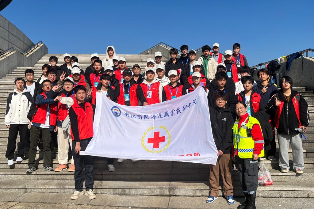 我校红十字会海韵健康服务队金曙敏医生负责AED医疗保障与20余名学生志愿者负责其他保障工作共同“保驾护航”舟山马拉松,做好舟山马拉松赛事应急救护和其他保障资源志愿服务工作,确保赛事成功举办。