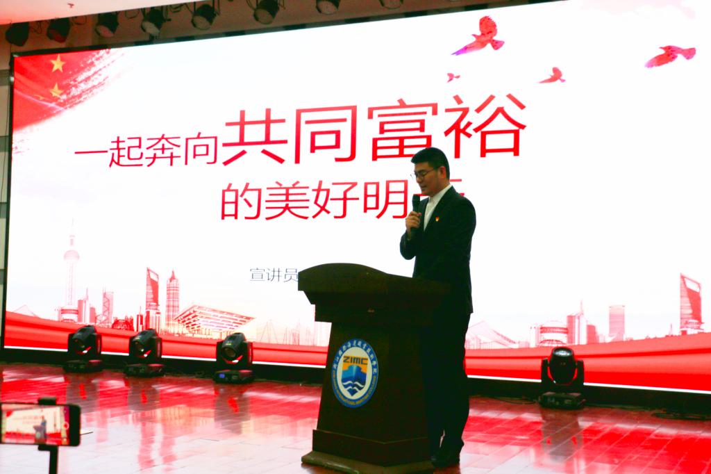 活动在校艺术团带来的舞蹈表演《觉醒年代》中拉开帷幕。来自舟山交投集团的宣讲员孙浩带来了《一起奔问共同富裕的明天》专题宣讲,带领大家走近习近平总书记在浙江考察时的一站,以新时代青年的观点、基层的视角、平实的语言向同学们阐述“八八战略”的浙江实践。我校“00”后宣讲员林伊涵为同学们进行《青春向党百年路,初心点亮新征程》专题宣讲,以自身的角度出发,以青年视角、青年语言讲述党的重要理论、重要思想、重大战略等在舟山的实践探索与成果。
