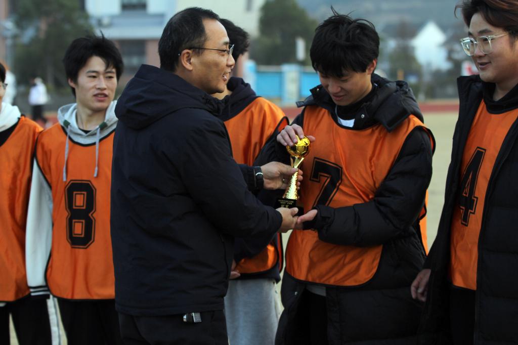 1月3日,决赛在岱山校区操场拉开帷幕,比赛场上双方队员你追我赶,对阵激烈。41分钟时,22石化“软脚虾队”先进一球以1:0领先。下半场易边再战,22石化“软脚虾队”乘胜追击、继续反攻防守,将优势扩大至3-0。最后22石化“软脚虾队”以3比0的比分击败22应化“赤足队”成为冠军。