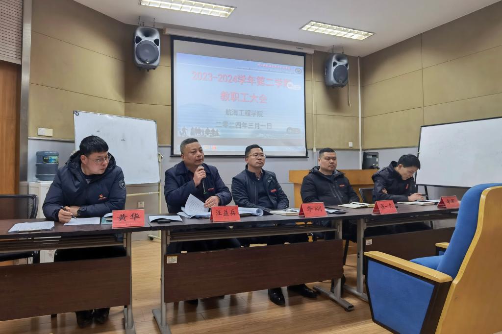 3月1日下午,航海工程学院在船舶工程实训楼三楼报告厅召开2023-2024学年第二学期教职工大会。学院全体教职工参加会议,会议由学院党总支书记李刚主持。