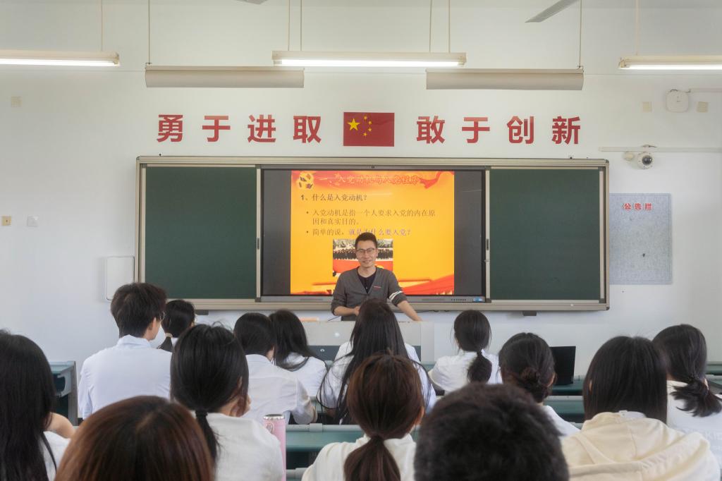 学院党总支书记陈宋芳围绕《中国共产党发展党员工作细则》为同学们详细讲解了入党流程。她希望同学们要加强学习,端正入党动机,在学习和实践中提升自我,还向同学们强调了党纪的重要性,无论是在学习还是生活当中,要有纪律意识和规则意识,做到学纪、知纪、明纪、守纪,加强自我约束,为个人发展打好坚实基础。