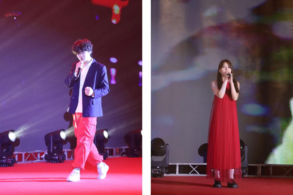 灯光流转间,选手们陆续登台,他们或轻声吟唱,或激昂高歌,每一句歌词都承载着他们对音乐的热爱和执着。《人世间》《浮夸》《Whataya want for me》……悠扬的歌声回荡在体育馆,赢得了现场师生观众的阵阵喝彩。