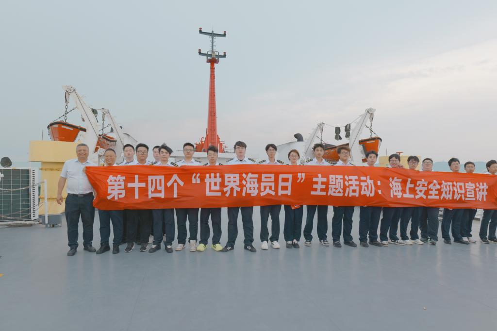 6月25日是第14个世界海员日,今年的主题是:“海上安全,分享您的最佳提示”。为宣传海上安全,提升海员安全意识,航海工程学院院长汪益兵、专业教师骆海洋带领航海专业部分学生走进航运企业、深入港口码头、登上停靠船舶进行海上安全知识宣讲。