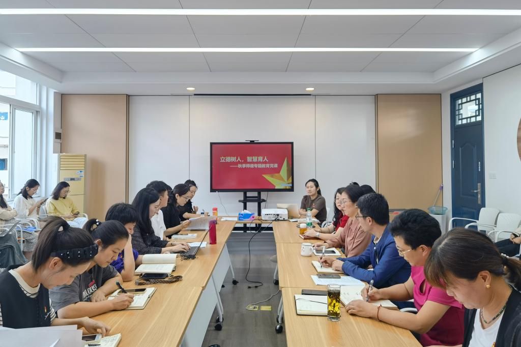 张蕊老师从学习习近平总书记在全国教育大会上的重要讲话精神、解析教育家精神内涵、弘扬教育家精神路径、分享精品在线开放课程建设实践经验等四个方面展开,以旁征博引、深入浅出的方式,阐释了对教育家精神的理解与践行,深刻认识师德建设的重要性,落实立德树人根本任务,为老师们呈现了一堂生动而深刻的党课。