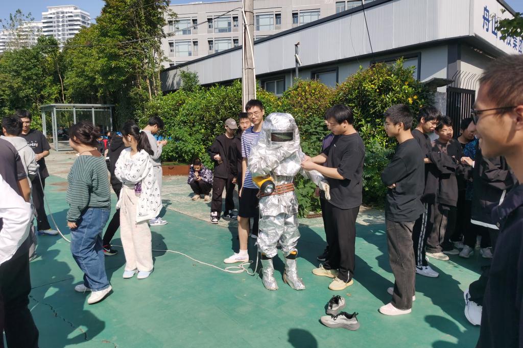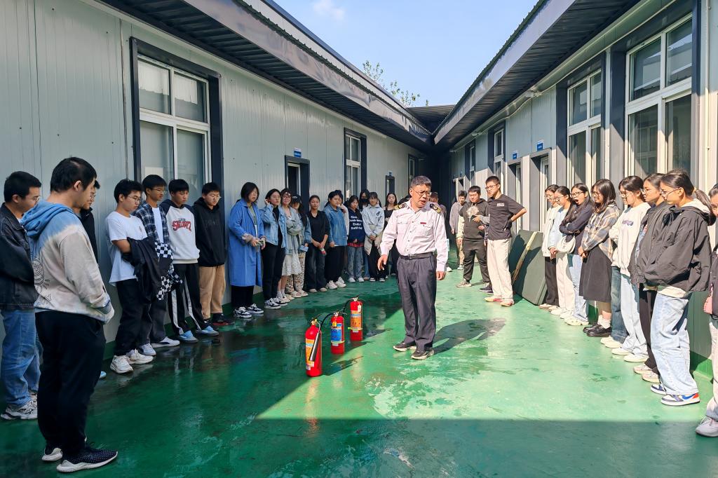 10点30分,学院开展消防宣传月活动,黄华副院长以日常生活最常见的灭火器为引子,介绍三种灭火器的使用方法,并介绍遇到火灾情况的应对措施与应急逃生办法。随后,组织新生以班级为单位模拟火灾发生时的逃生场景,并让新生穿戴全套防火设备,增加相关知识储备。