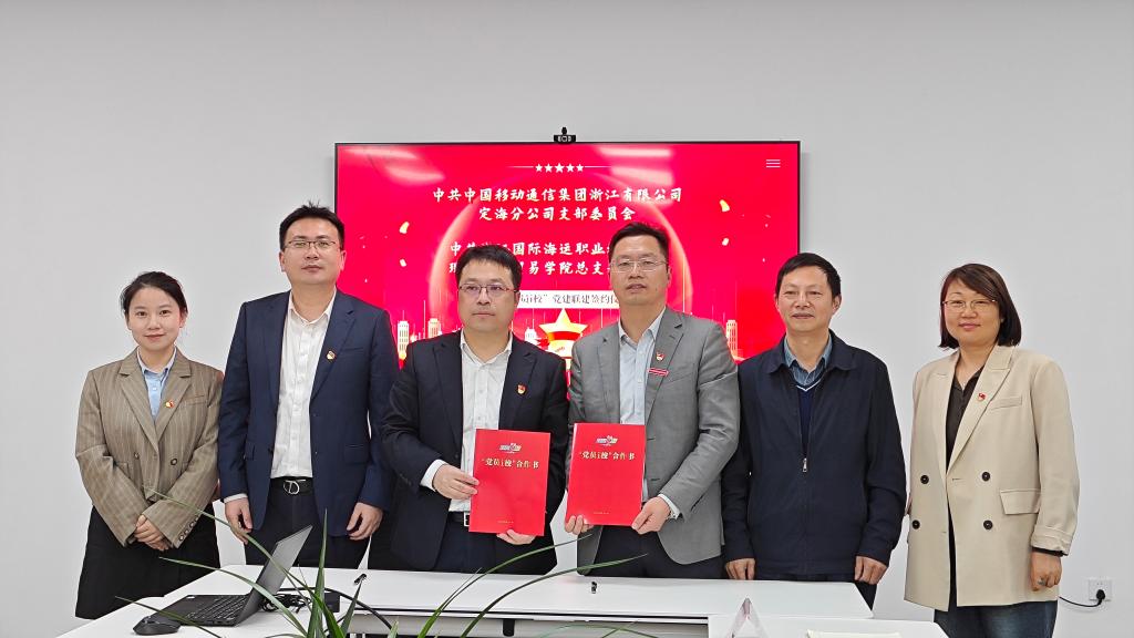 11月23日,现代港口贸易学院党总支与中国移动定海分公司党支部在海德楼4304党员活动室举行“党员i校”党建联建签约仪式。定海分公司总经理刘小华、副总经理蒋光辉一行四人及现代港口贸易学院党政班子出席活动。