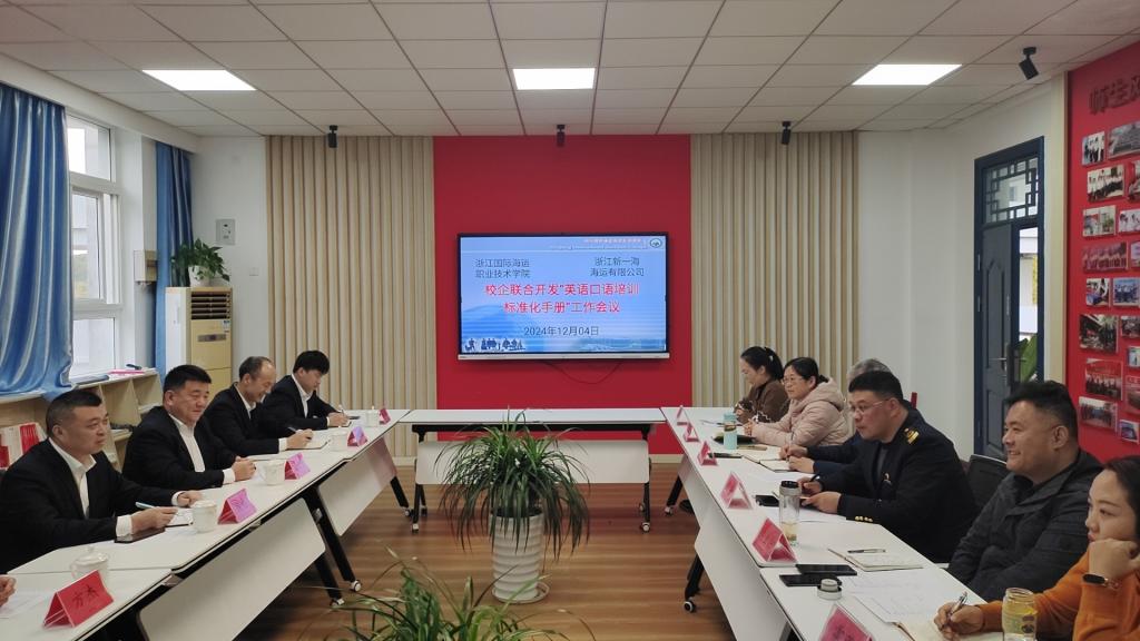 12月4日,航海工程学院在2309会议室召开校企联合开发《英语口语培训标准化手册》会议。航海工程学院副院长黄华,浙江新一海海运有限公司党委委员、纪委书记、工会主席周勇出席会议。本次会议旨在联合开发《英语口语培训标准化手册》,以响应国家关于深化产教融合、校企合作的最新文件精神,推动教育与产业的深度融合,培养适应新时代需求的高素质技术技能人才。