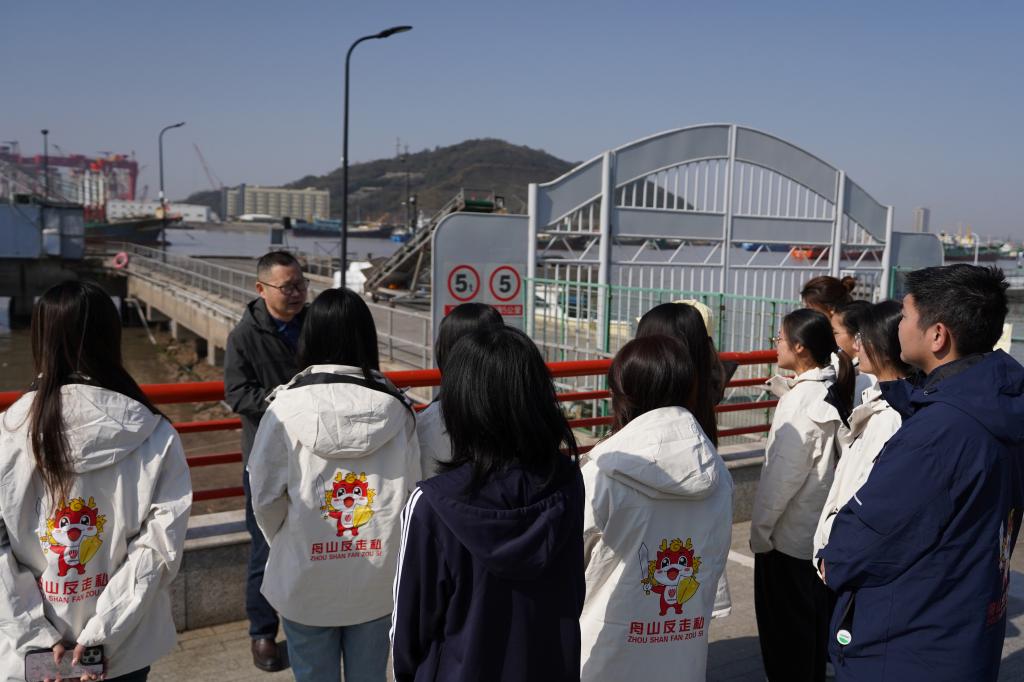 3月23日上午,远洋渔业码头和沈家门渔港博物馆成为实践第三站。在码头旁,孙峰老师介绍了远洋鱿鱼运输船走私的生动案例。随后前往沈家门渔港博物馆,了解渔民生产、生活习俗及渔都沈家门的形成、发展和解放后的大变化。最后社团沿北安路、中大街开展流动宣传,向商户、路人发放宣传册。