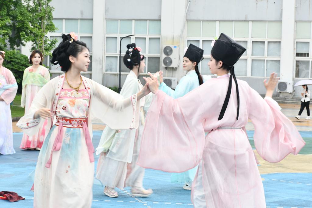 以文化疗愈赋能学生心理健康——现代港口贸易学院举行汉服主题校园广场舞活动