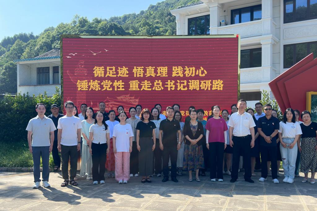 在南洞艺谷党建广场,全体党员面向党旗庄严宣誓,重温入党誓词。随后,讲解员介绍了当地乡村振兴工作开展情况,重点展示了生态治理、产业融合、文化赋能等方面取得的实践成果。党员们沿着习近平总书记视察足迹,先后参观了群众艺术创作中心、画春园、酒缸潭,通过实地走访,体悟“两山”理念的生动实践。