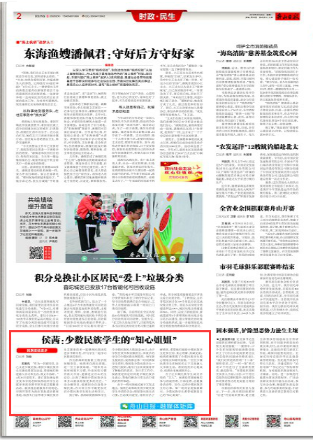 据了解,浙海职院教师和学生中少数民族的人数超过100人,由于学校在贵州和安徽招生,来就学的学生中少数民族比例较高。每年新生报到前,侯茜都会第一时间掌握学生资料,特别是少数民族学生一进校门报到,她专门会负责接待并了解他们的需求。在日常工作中,侯茜更是固定时间找少数民族学生谈心,帮他们解决日常生活中碰到的种种难题。
