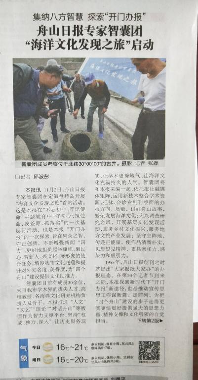 《舟山日报》:舟山日报专家智囊团“海洋文化发现之旅”启动
