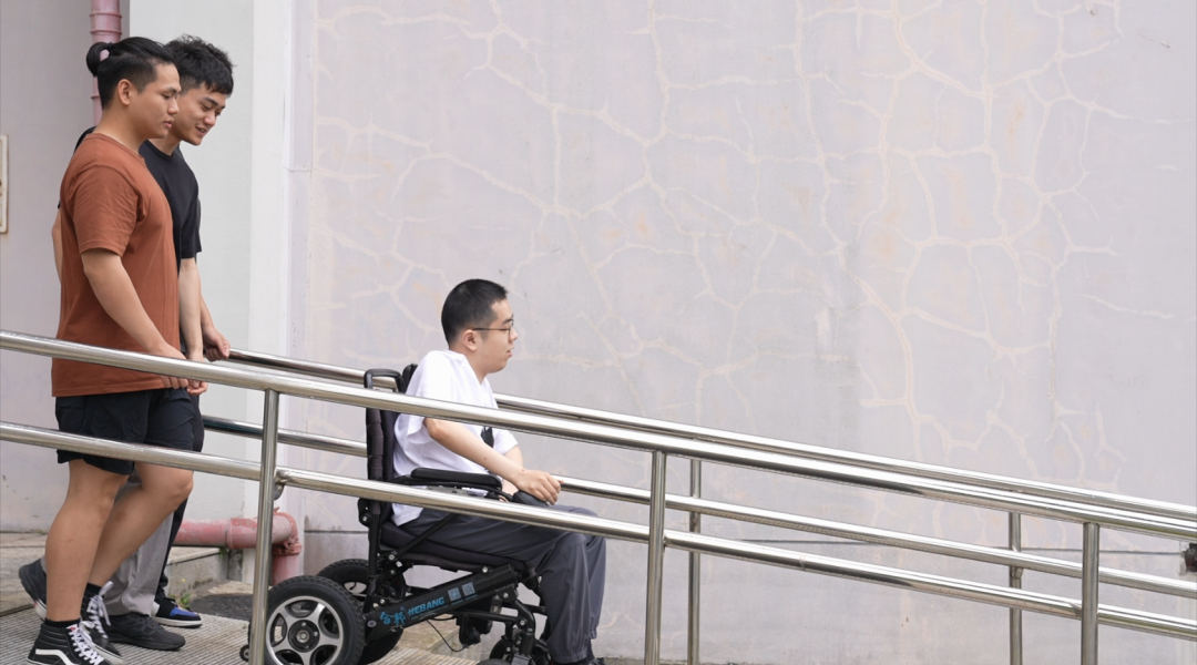 由于行动不便,王琪沣的妈妈多年来一直陪在他身边照顾。了解情况后,学校用心安排了小王入校后的诸多生活学习细节:为母子俩专门安排了一间位于一楼的无障碍宿舍,同时改造了教学楼设施,增设了多处无障碍通道,方便轮椅进出。