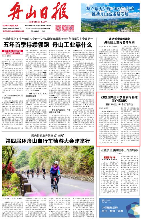 (2024年4月22日《舟山日报》头版 https://epaper.zhoushan.cn/html/2024-04/22/content_145340_654903.htm)