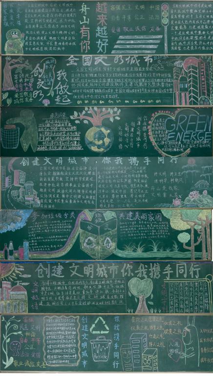 通过这次黑板报的选材、设计、评比,同学们对创建文明城市、文明校园有了更加深刻的了解,也为自己能够成为创城活动中的一份子而感到自豪、欣喜。(图文/林芷伊)