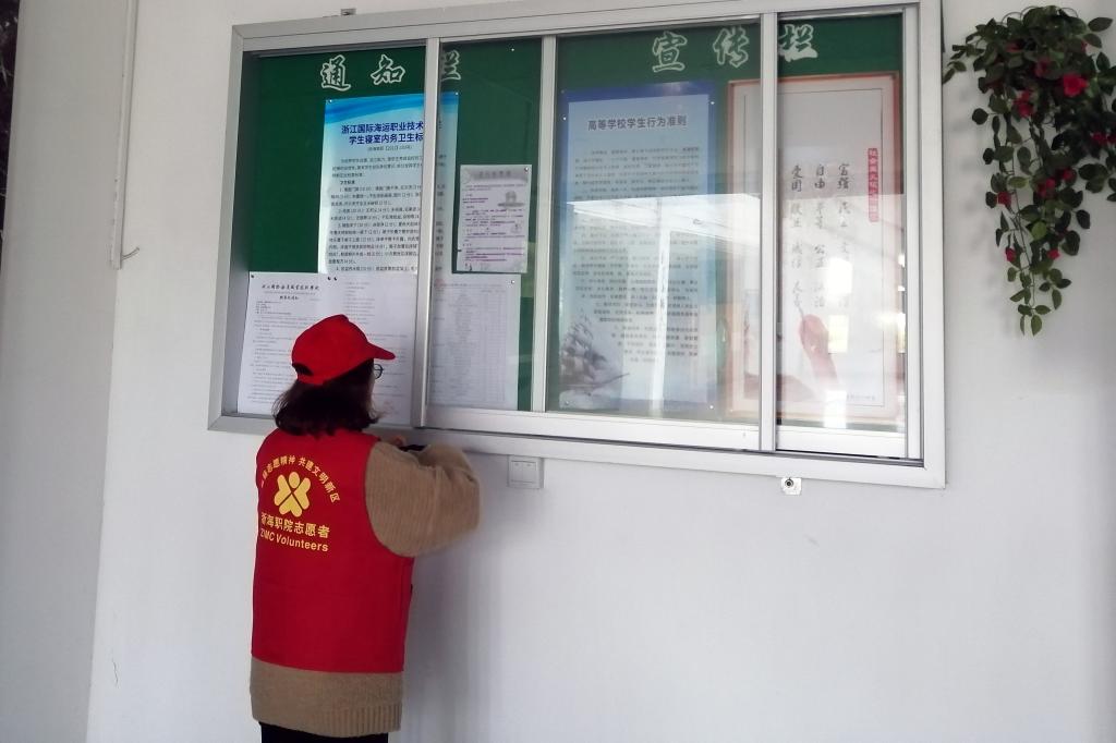 随后,党员志愿者们分为四个小组,主要针对各类公益广告、宣传品、标识标牌等进行了专项巡查,巡查范围覆盖全校20幢主要建筑物和篮球场、田径场等校园公共区域。党员志愿者们分工明确,随身携带着抹布、小刀、水桶、双面胶等工具,对有脏污、灰尘的宣传栏窗等进行清洁整理,认真检查公益广告的内容是否符合创城要求,并将巡查中发现的问题一一记录在表格中,统一反馈至学校创建办。后续,校创建办将根据反馈结果对宣传品和宣传设施进行相应的整改。