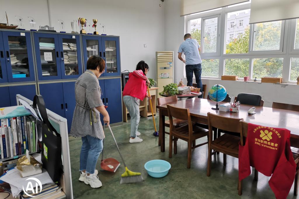 学院严密制定大扫除方案,分工明确、责任到人。全体师生各司其职,对各办公室、实训室、教室、学生宿舍的门窗、墙面、地面、设备等进行全面、认真清理,确保责任区卫生无死角。经过全院师生的共同努力,学院的办公室、实训室、教室、学生宿舍环境焕然一新。大扫除结束后,各学业导师下寝室督查学生创城应知应会相关知识。