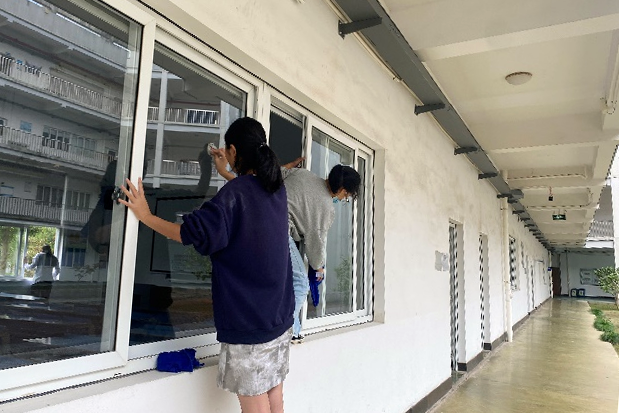 公益社的志愿者们热情高涨、认真仔细地打扫着分配到的教室,玻璃窗、桌椅、黑板、讲台的死角都被打扫的干干净净。