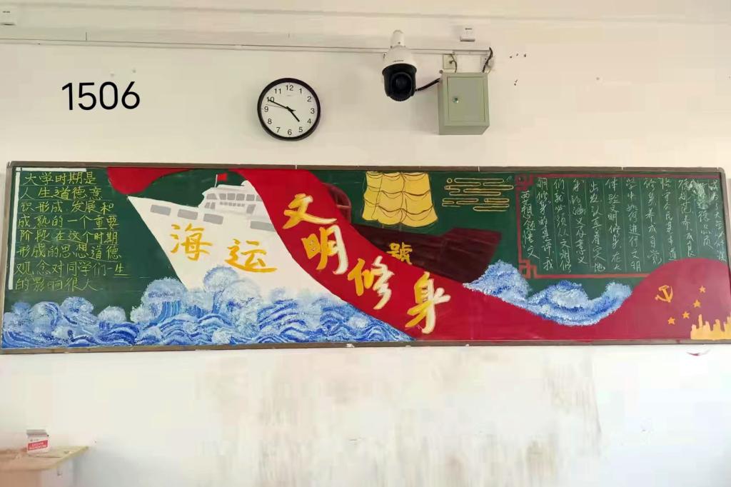 11月5日,国际教育学院组织了“文明修身主题板报”评比。同学们积极参与,充分运用创造力绘画出自己对于文明的理解与诠释。“文明礼仪伴我行”、“海运文明修身号邮轮”、“文明修身践行规范”等各种主题的板报不仅培养了同学们的动手能力,展示了他们的才能,也充分调动了同学们的积极性和创新精神,培养了他们的文明情怀。