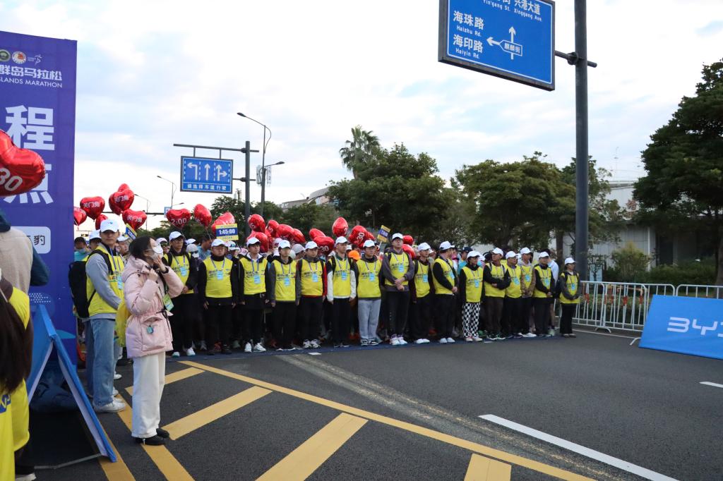 比赛当日,凌晨四点,365名“海小豚”志愿者整装待发,以满腔热忱奔赴2024舟山马拉松赛场。在每一个服务岗位上,志愿者们都展现出了专业素养与热情服务态度。从礼仪接待的温文尔雅,到奖牌发放的细心周到;从赛前引导的耐心解答,到赛后咨询的温馨关怀;从起点仪式的庄重热烈,到终点庆祝的欢腾喜悦,他们始终面带微笑,以真诚的态度,为每一位参赛者提供贴心的服务。