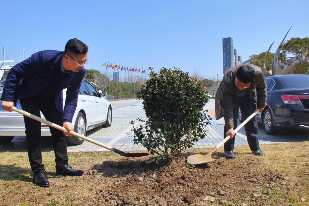 配合学校绿色校园整体布局,后勤产业处提前准备,计划在学校海智楼北面种植一片茶梅,为校园增添一抹新绿。苏为泽、吴中平、孔志光、刘相等校领导和多名师生代表参加。