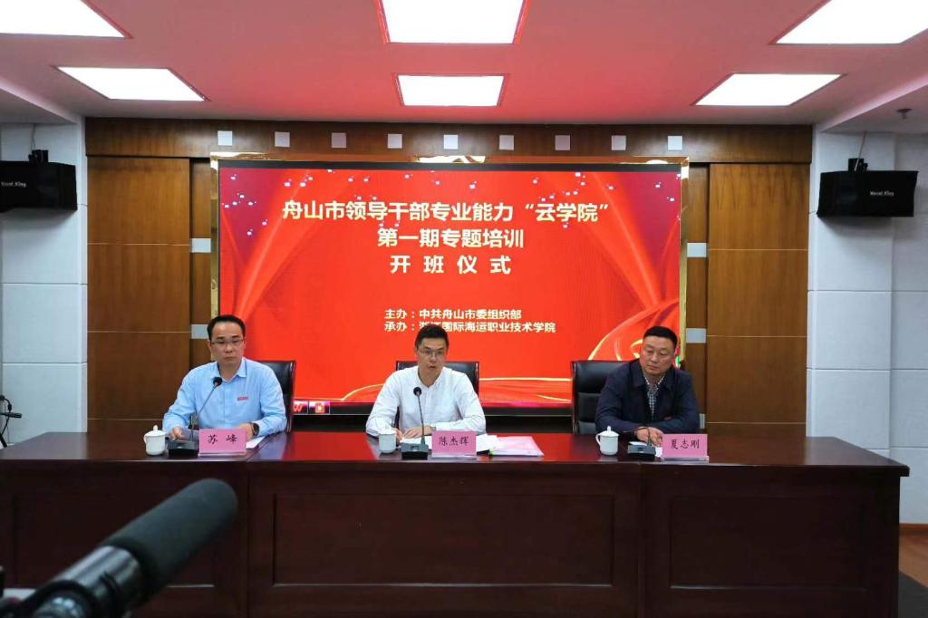 为进一步提高舟山市各级领导干部全力推进创新深化改革攻坚开放提升的能力和水平,市委组织部创新推出的领导干部专业能力“云学院”落户我校。5月24日,“云学院”第一期优化营商环境专题培训在我校顺利举办,舟山市委组织部副部长陈杰辉,我校党委委员、副校长夏志刚及全市700余名干部参加开班仪式并参与学习,仪式由东海教育学院院长苏峰主持。